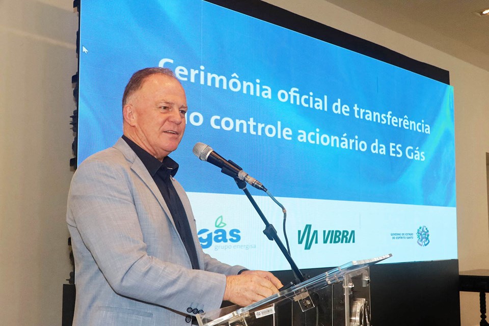 O Governo do Estado do Espírito Santo e a Vibra Energia realizaram, na manhã desta sexta-feira (07), a cerimônia de transferência acionária da Companhia de Gás do Espírito Santo – ES Gás para o Grupo Energisa, vencedor do leilão para alienação da totalidade das ações da Companhia, ocorrido em março último. A solenidade aconteceu no Salão São Tiago, no Palácio Anchieta, em Vitória, com a presença do governador do Estado, Renato Casagrande.