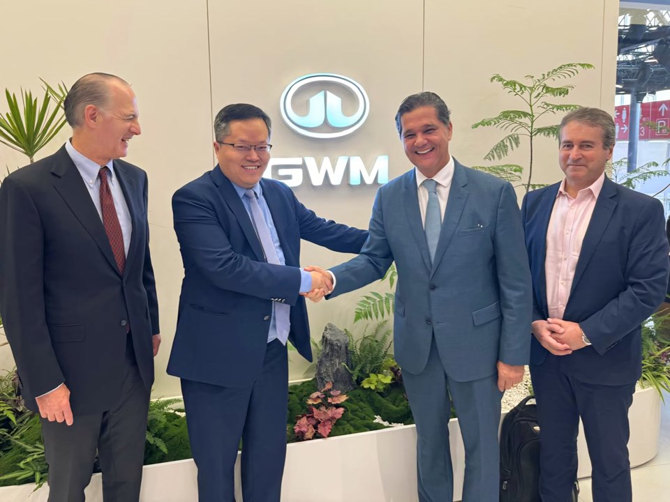 Assinaram o termo de cooperação o vice-governador e secretário de Estado de Desenvolvimento, Ricardo Ferraço, o presidente da Comexport, Alan Goldlust, o vice-presidente Comercial da Comexport, Rodrigo Teixeira, e o presidente da GWM América Latina e Região, James Yang.